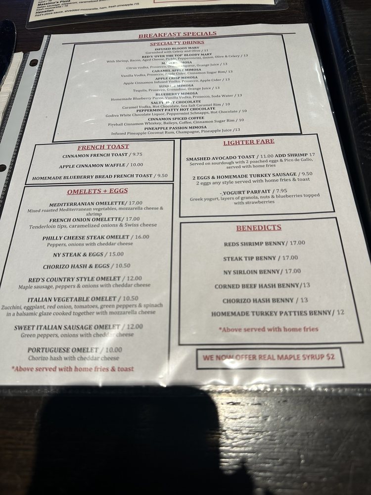 Red’s Kitchen + Tavern in Seabrook, NH offers a vibrant dining experience in the sports bar and American cuisine category. The menu includes breakfast & brunch options, with a range of utilities such as takeout, delivery, and catering. The venue boasts a lively atmosphere with live music and happy hour specials, making it a popular spot for locals and visitors alike. Customers praise the attentive service, delicious food including the Baba Ghanoush special, cobb salad, buffalo wings, and cheese pizza. The staff, including standout bartender Jack, go above and beyond to ensure a pleasant dining experience. With a diverse menu, cozy ambiance, and exceptional service, Red’s Kitchen + Tavern stands out as a top choice for casual dining in the area.